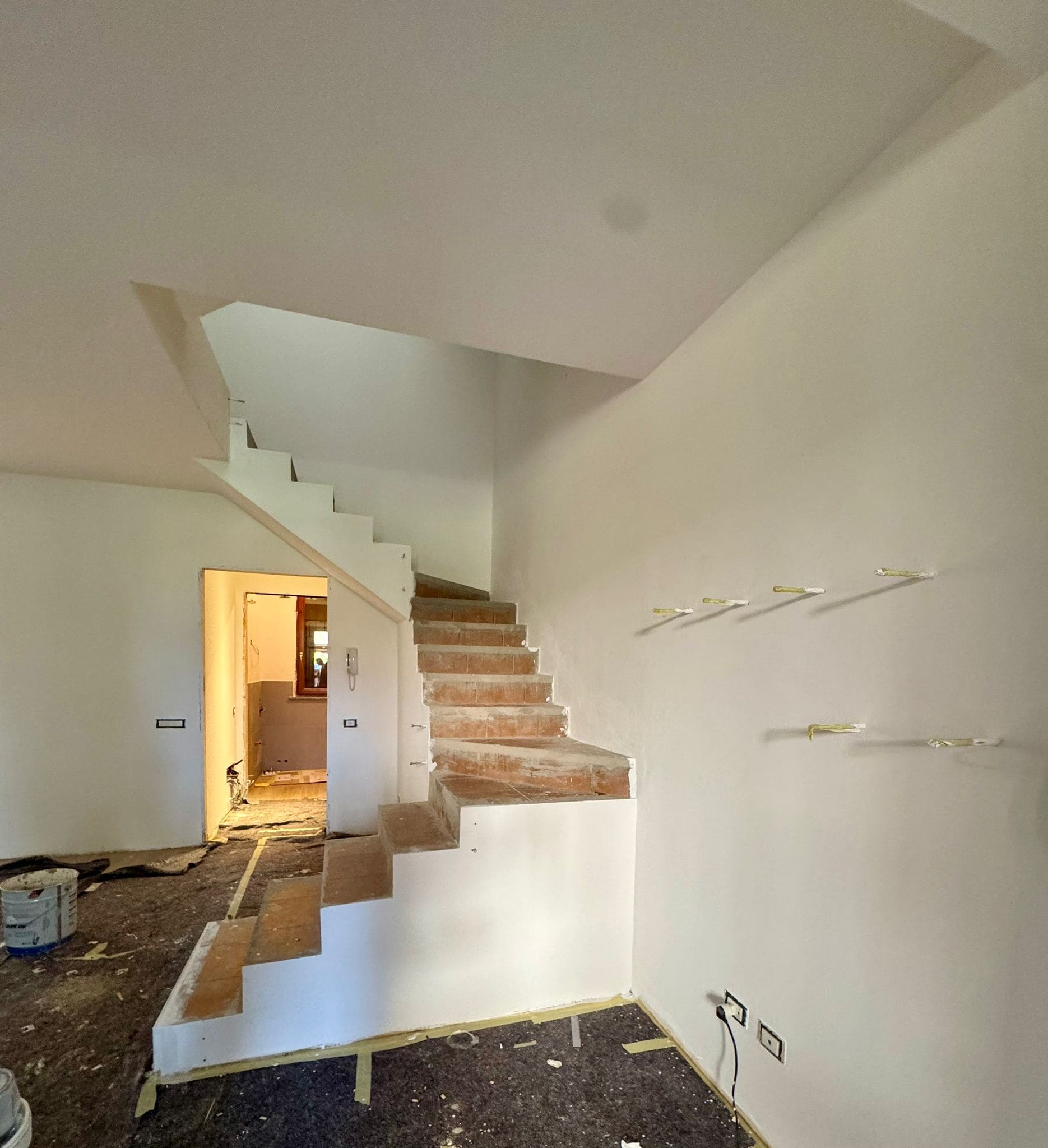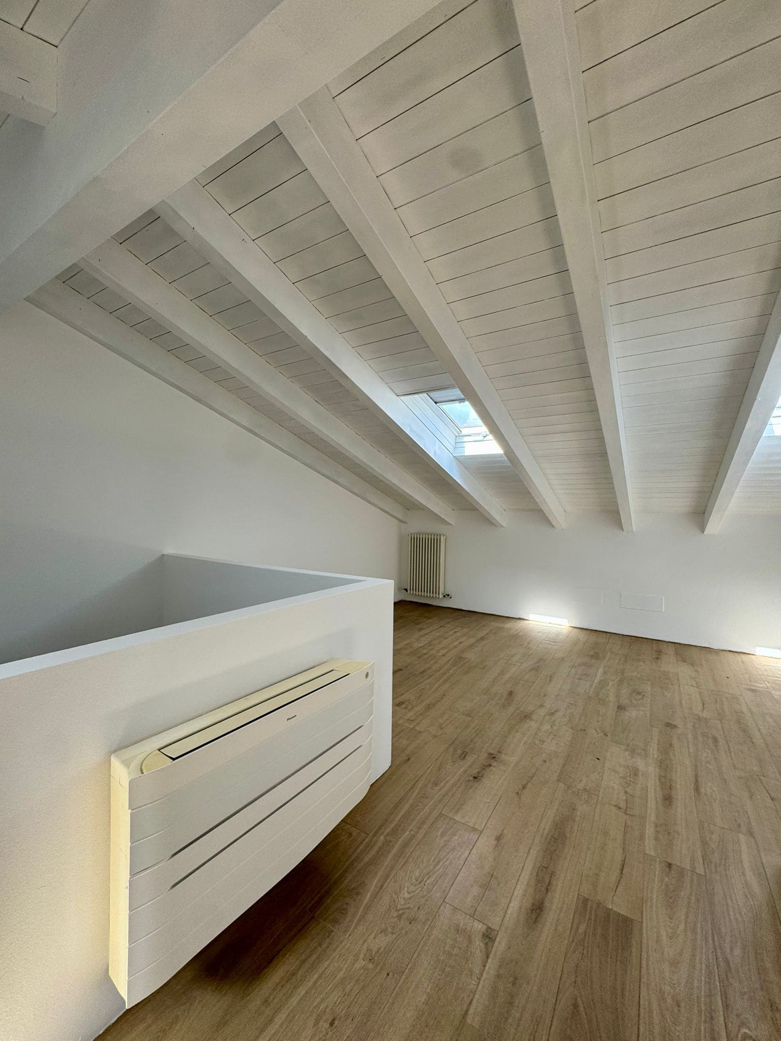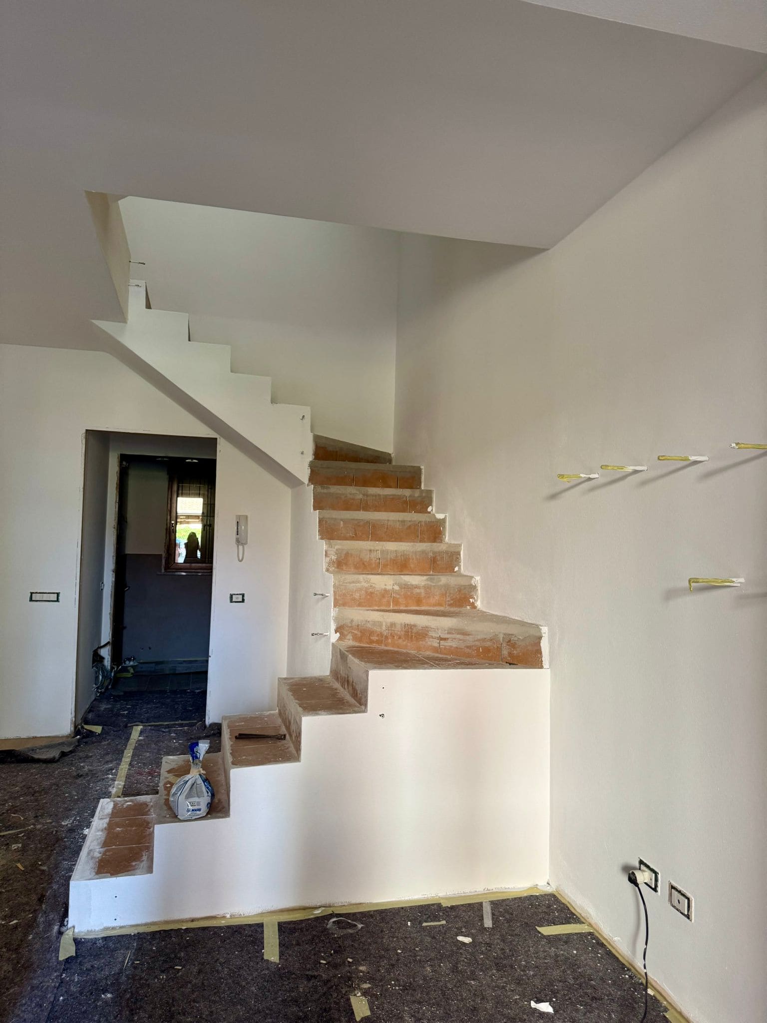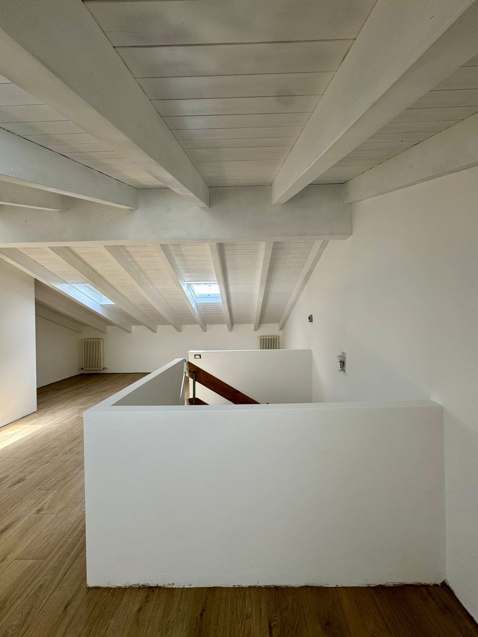 Le opere hanno interessato tutte le superfici interne: dal rifacimento totale dei bagni alla posa di nuovi pavimenti, dal rinnovo delle porte e della scala interna fino alla tinteggiatura generale.